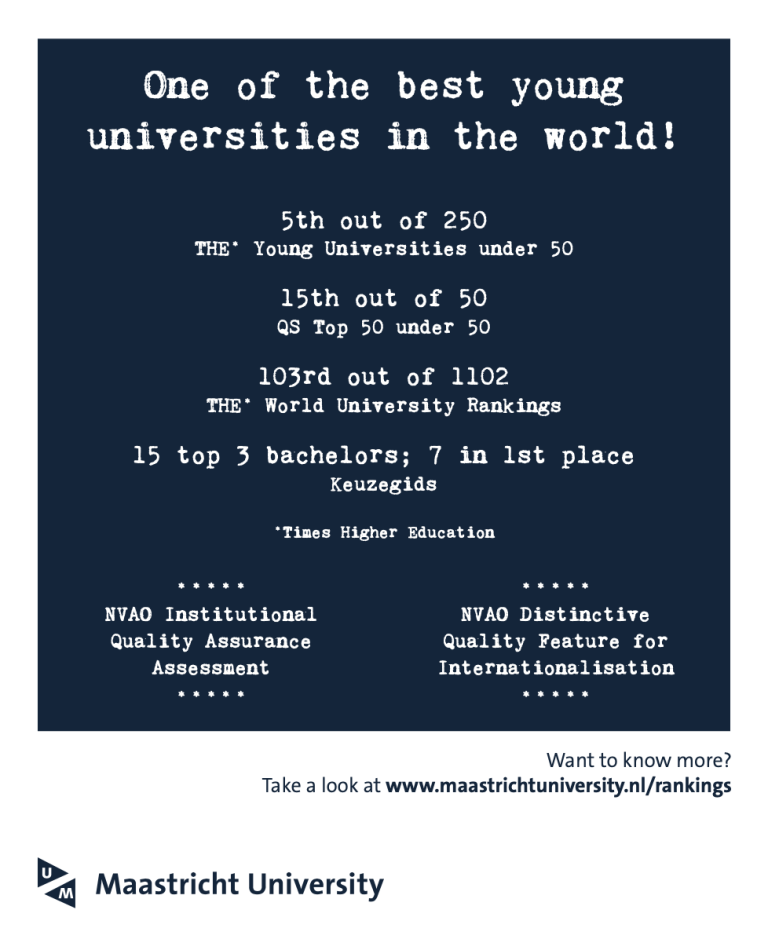 Zuiderlicht is al jarenlang preferred supplier van Universiteit Maastricht op het gebied van design. Daar zijn we trots op. Dankzij de diversiteit van de opdrachten worden we uitgedaagd om al onze expertises aan te wenden, zowel in de breedte als de diepte. Van cue cards voor de Dies Natalis tot het verbeteren van de digitale klantreis. Van trainingen social media en analytics tot magazines en rapporten.