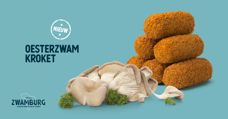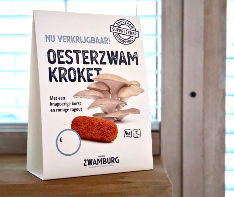 Nieuwsgierig geworden naar de oesterzwamkroket? Vraag ernaar bij jouw snackbar of bestel een doosje rechtstreeks bij Zwamburg.