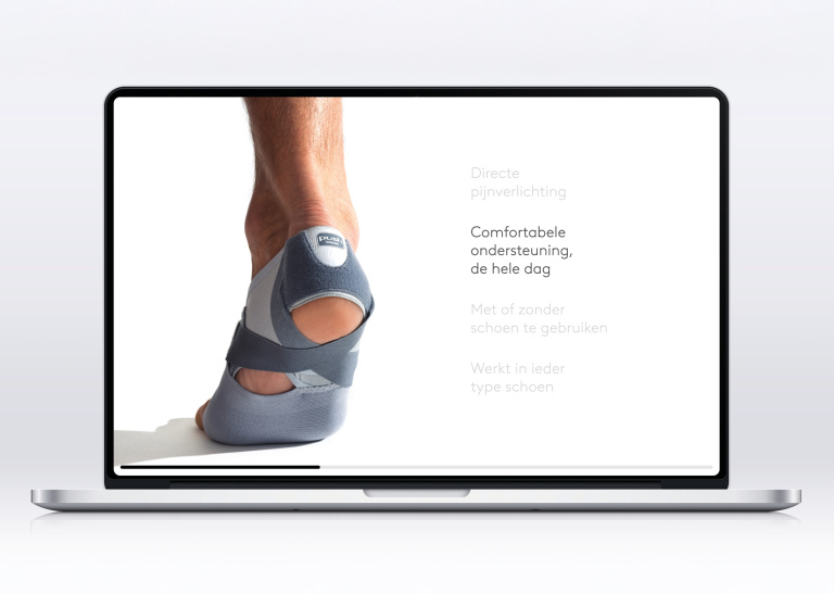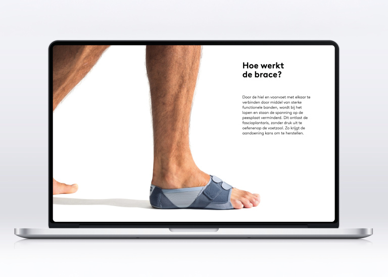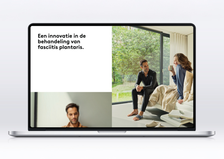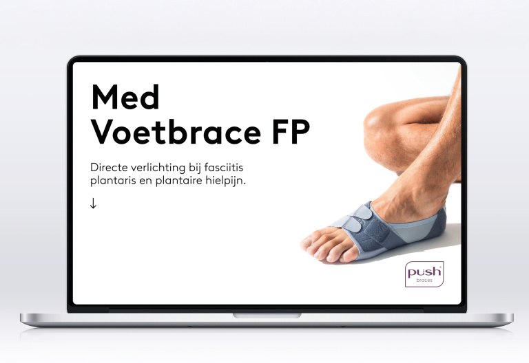 Bij de lancering van een nieuw product zetten we regelmatig een bijzondere onepager in als spil van de communicatie. Zo ook voor de Push® med Foot Brace FP, een nieuwe aanpak voor de behandeling van fasciitis plantaris. Deze onepager rijgt alle informatie over dit product visueel aan elkaar tot één samenhangend en overtuigend verhaal, dat niet alleen het product maar ook het merk versterkt. Informatieve productvisuals worden afgewisseld met lifestylebeelden die het terugkrijgen van bewegingsvrijheid direct voelbaar maken. Een van de highlights is een 360-gradenvideo, die we verrijkten tot interactieve infographic. Samen zorgt dit alles voor een naadloze merkbeleving die twee doelgroepen tegelijk bedient: voorschrijvers én eindgebruikers.